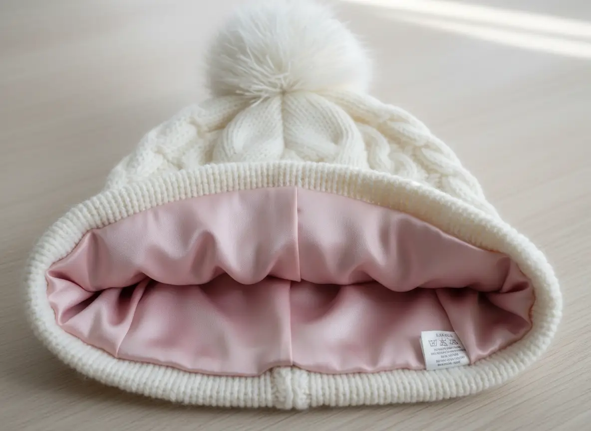 Off-White Merino Wool and Organic Cotton beanie lined with 100% Premium Silk.